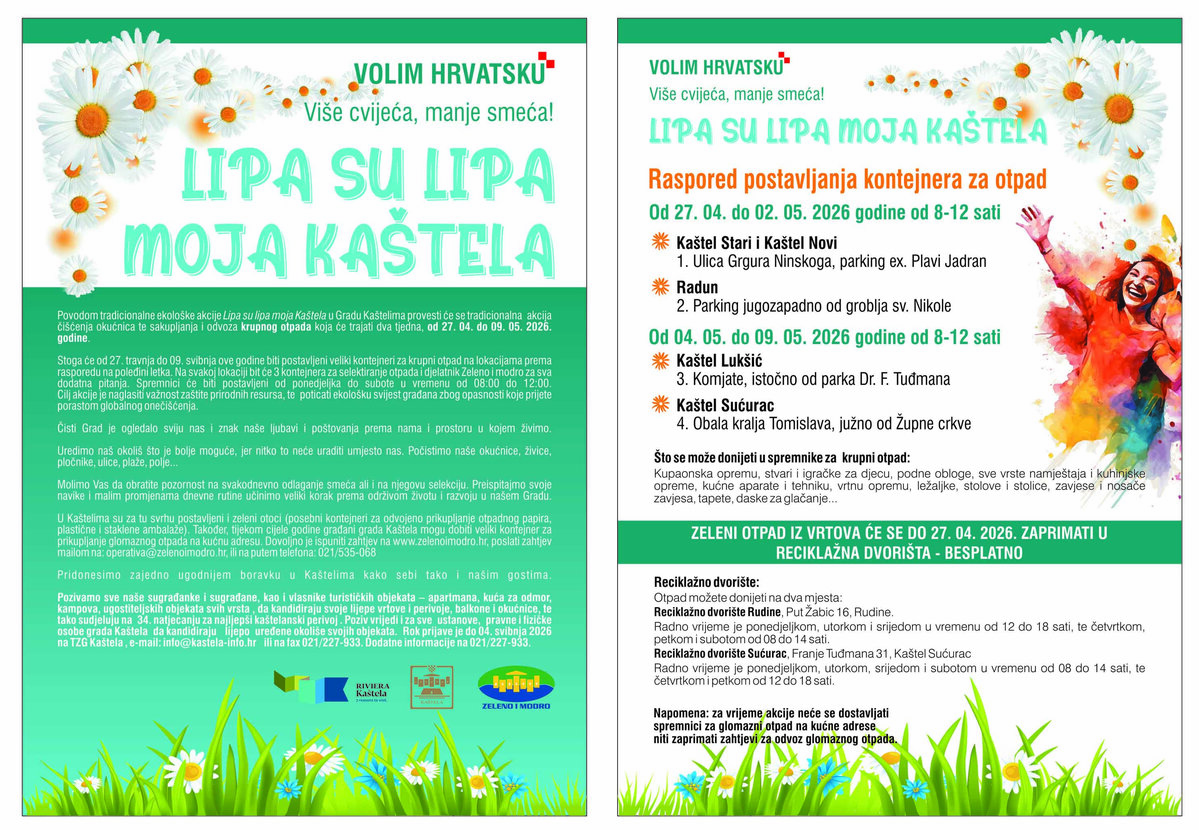 Upute25. kaštelanski praznik cvijeća, tradicionalna je manifestacija u organizaciji Turističke zajednice grada Kaštela. Događaj nudi raskošne cvjetne instalacije u parku Kaštel Novi (Đardin), prodajnu izložbu te bogat edukativni i kulturni program.