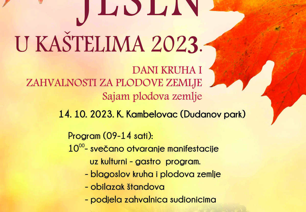 32. Dani kruha – dani zahvalnosti za plodove zemlje koji se obilježavaju od 1991. godine u odgojno-obrazovnim ustanovama, a 26. godinu kao jedinstvena gradska manifestacija. U cilju promicanja agro-turističke ponude Kaštela, tradicijskih djelatnosti i poljoprivredne tradicije Kaštela, Udruga za promicanje kvalitete života, kulturnih vrijednosti i baštine „Šušur“ i Turistička zajednica grada Kaštela, pod pokroviteljstvom grada Kaštela, te u suradnji s kaštelanskim odgojno-obrazovnim ustanovama i udrugama organizira manifestaciju „Jesen u Kaštelima – Sajam plodova zemlje“ u kojoj su objedinjene i manifestacije Dani kruha i zahvalnosti za plodove zemlje.