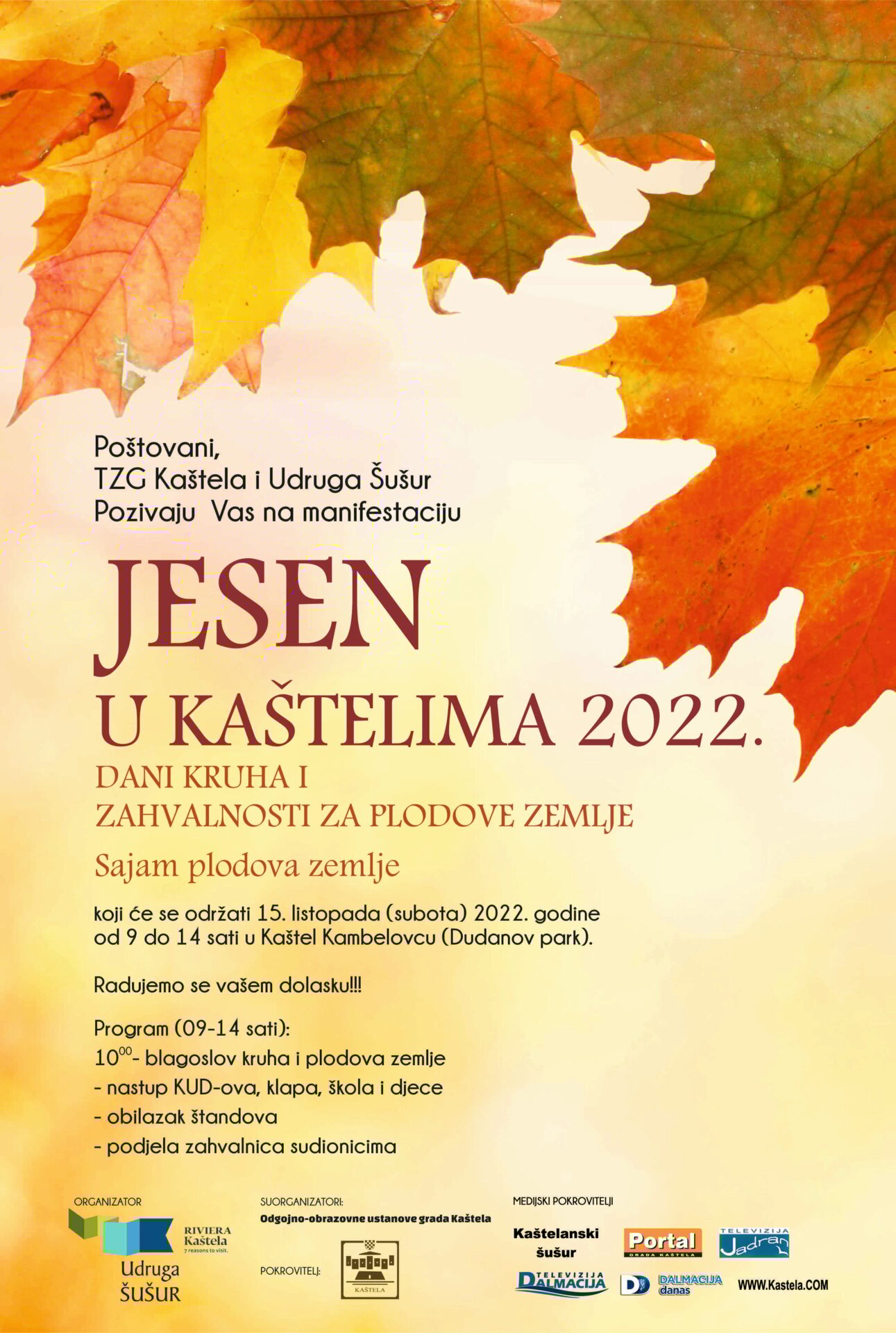 Pozivamo Vas da se prijavite za sudjelovanje na ovoj manifestaciji, te da na svojim štandovima prezentirate svoje aktivnosti i proizvode , kao i bogastvo kaštelanske tradicije.