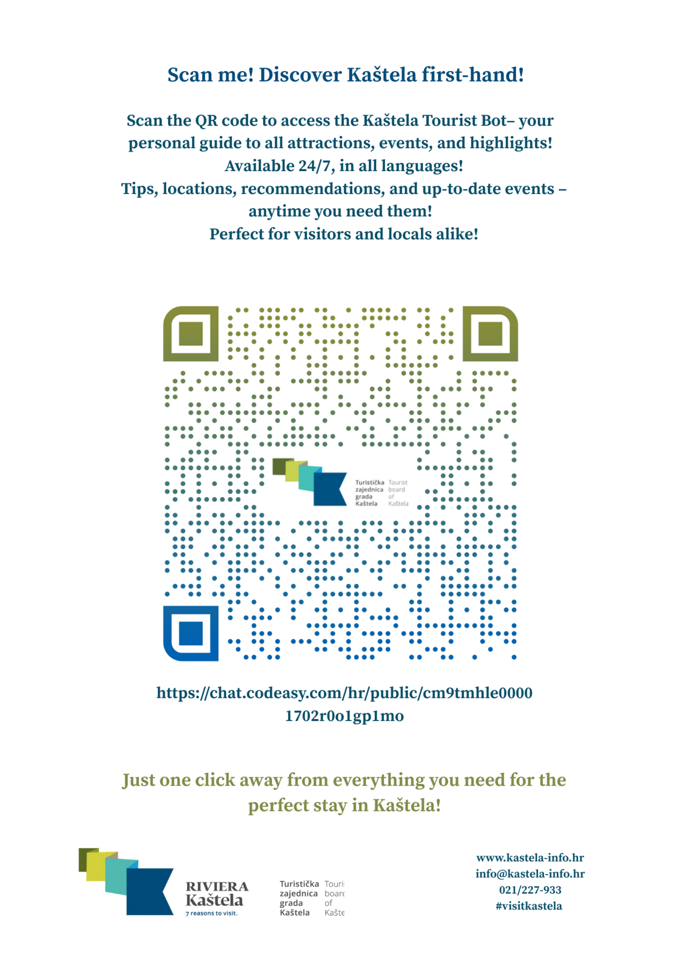 Skeniraj QR kod i pristupi turističkom botu grada Kaštela – tvojem vodiču za sve zanimljivosti, atrakcije i događanja!